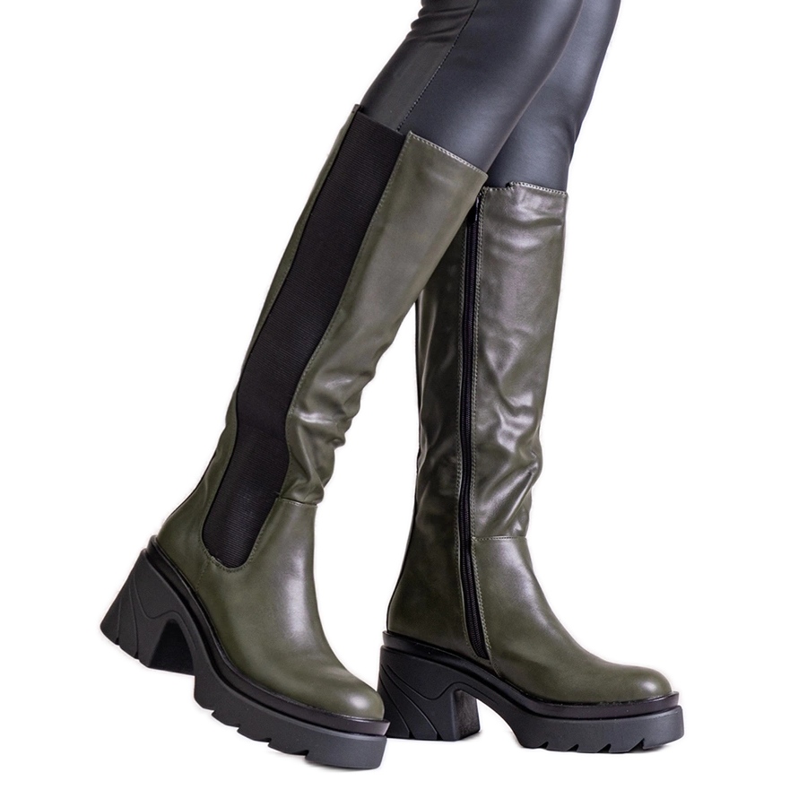 Grüne Stiefel auf dem dickeren Charla Post sind eine gute Wahl für Frauen, die Eleganz mit Komfort kombinieren möchten. Diese modischen Schuhe aus hochwertigem Öko -Leder zeichnen sich durch eine runde Nase aus, die ihnen Stil verleiht. Eine Höhe von bis zu 45 cm und ein interessanter, praktischer Reißverschluss machen sie perfekt an die Figur und sind auch leicht zu veranlassen.
