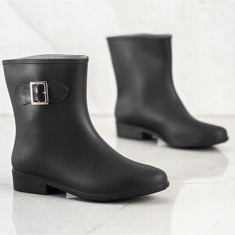 Die in Schwarz erhältlichen SHELOVET-Gummistiefel mit Schnalle sind die perfekte Wahl für eine moderne Frau, die Wert auf Komfort und einen modischen Look legt. Ihr Slip-On-Verschluss ermöglicht ein schnelles und einfaches An- und Ausziehen der Schuhe.
