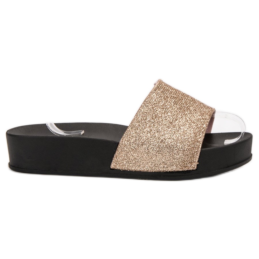 Gummipantoffeln auf der SHELOVET-Plattform in saftigem Gelb sind eine perfekte Wahl für Sommertage, die mit Sicherheit Aufmerksamkeit erregen und jedem lässigen Styling Stil verleihen. Ihr einzigartiges Design wird durch auffällige Pailletten auf dem vorderen Riemen ergänzt, die das Fischschuppenmotiv imitieren und so einen einzigartigen Akzent in Sommeroutfits setzen.