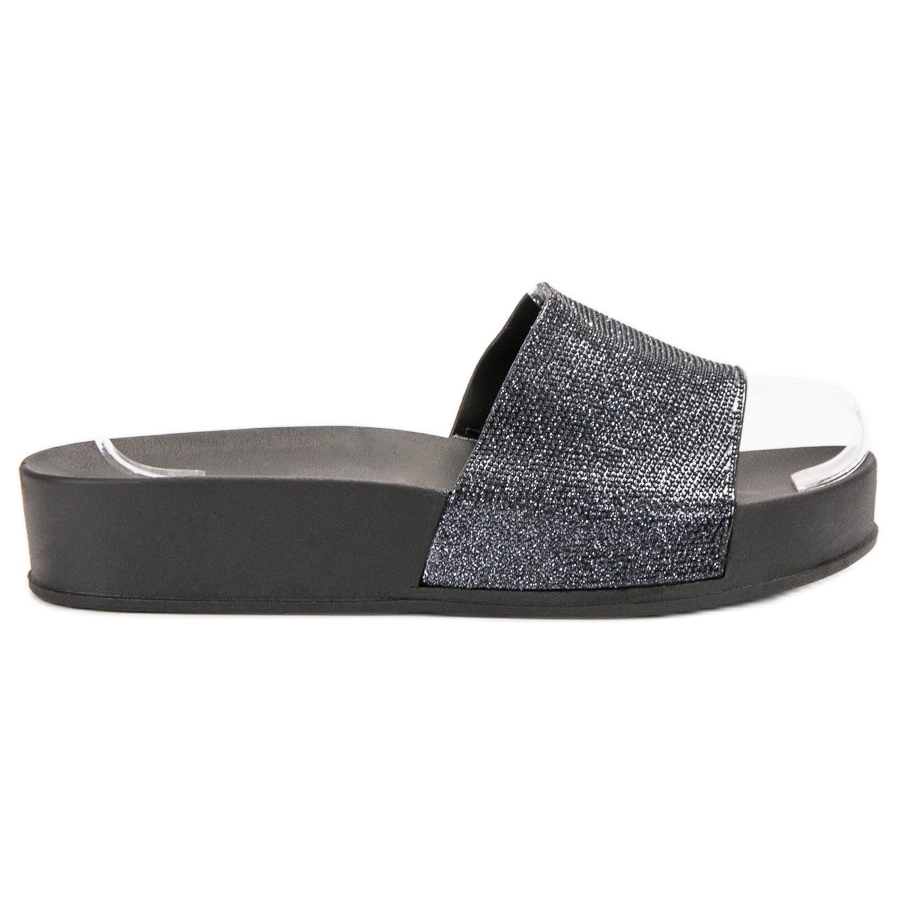 Eine bequeme, leicht erhöhte Sohle mit einer Höhe von 3,5 cm sorgt für Stabilität und Komfort bei jedem Schritt und das Gummimaterial macht die zehenstegsandalen leicht und einfach sauber zu halten. Ein stilvolles Detail in Form von Pailletten auf einem breiten Riemen verleiht ihnen einen einzigartigen Charme und unterscheidet sie von anderen Modellen.
