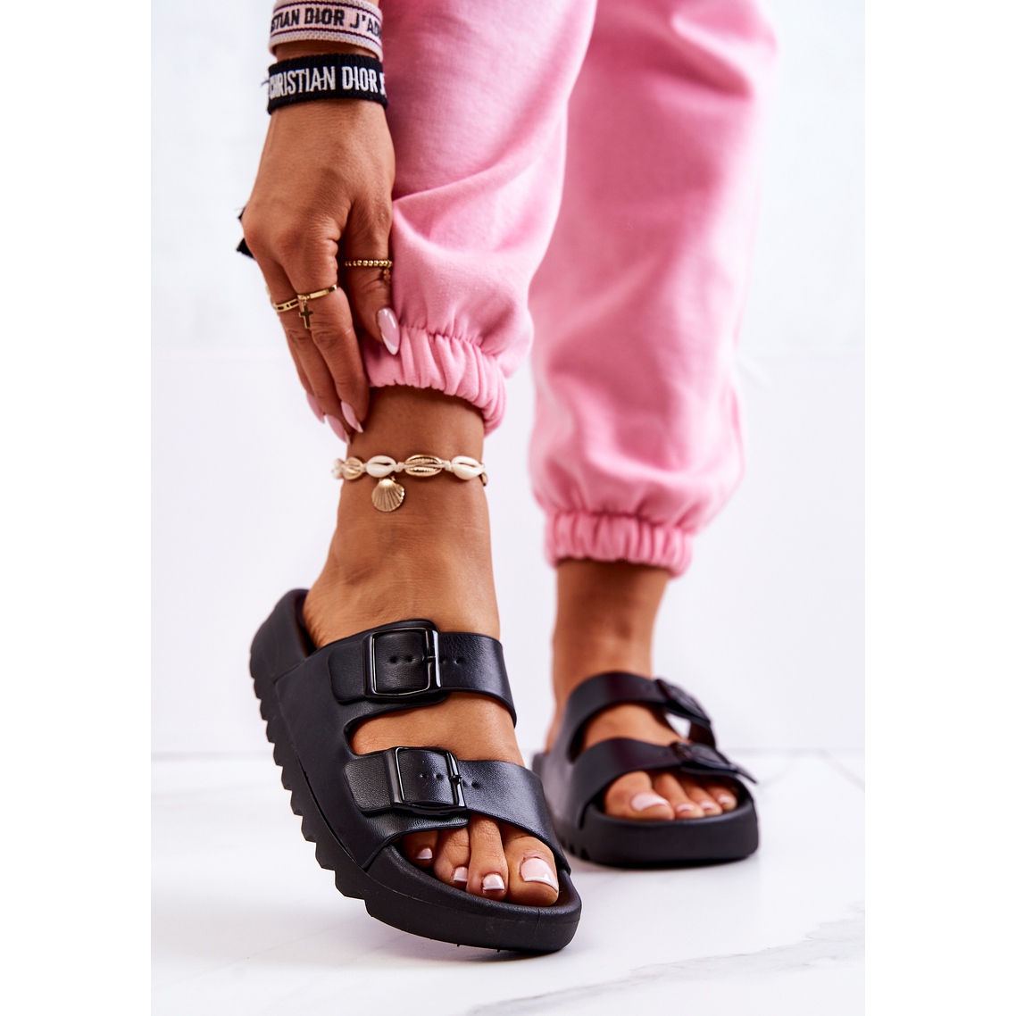Details: PS1 Gummipantoffeln auf der schwarzen Westie-Plattform