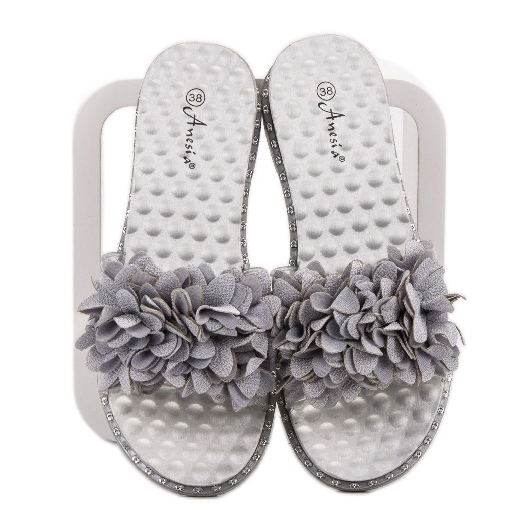 Anesia Paris Anesia Paris Gummipantoffeln mit Blumen grau