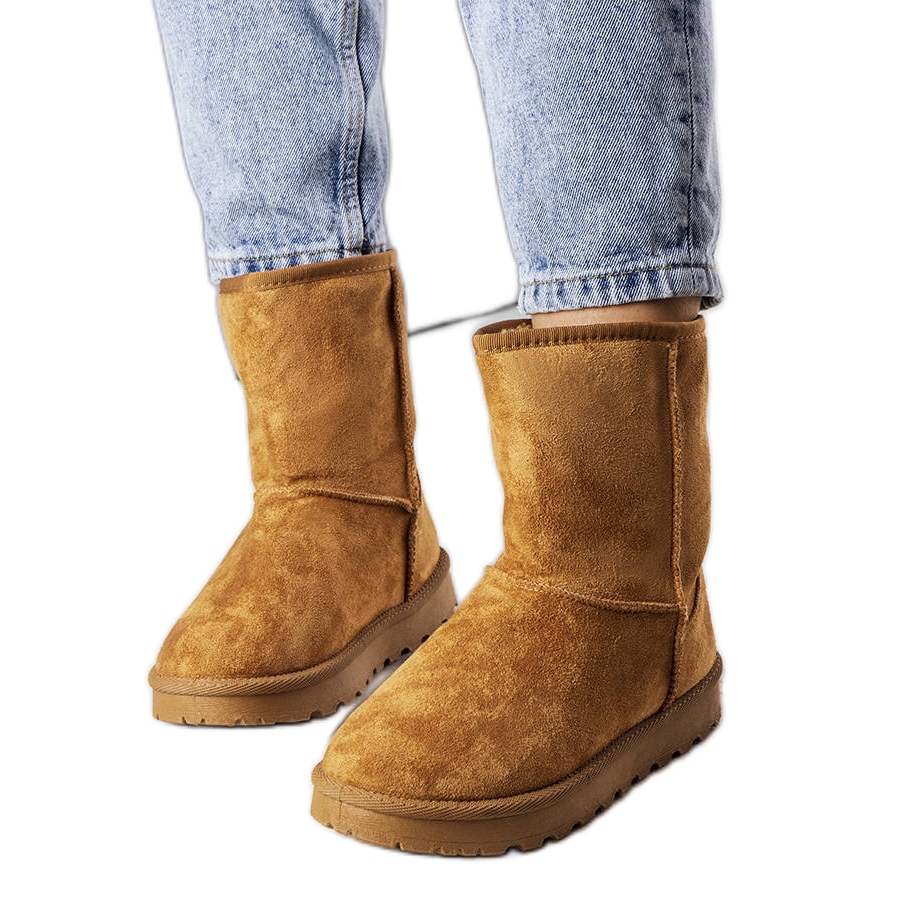 Klassisch, komfortabel und warm - perfekt für Winter, alltägliche Stilisierungen. Hank -Schneestiefel bestanden aus Wildleder -ökologischem Leder in einem Kamelschatten, und ihr Innenraum wurde mit einem weichen Fell isoliert, das Komfort und Schutz vor Kälte bietet.