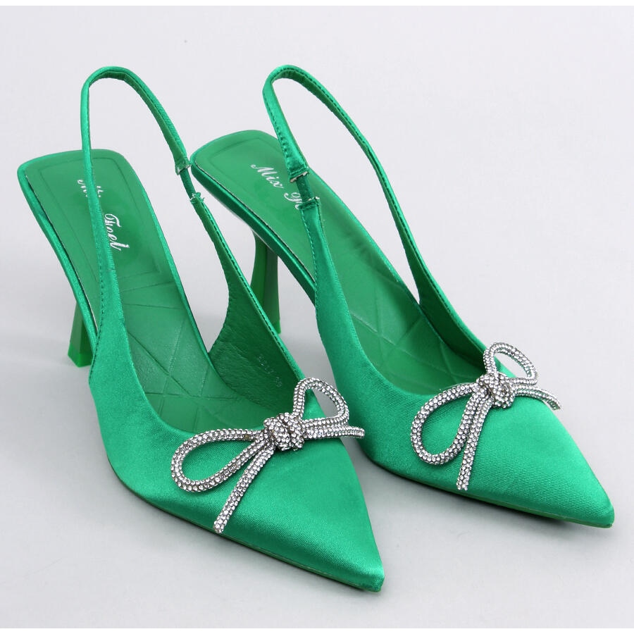 Phänomenale Frauenpumpen mit einer offenen Ferse, die den einzigartigen Charakter jeder Schöpfung hervorhebt. Das Satin -Finish im grünen und schlanken Schatten, 9 cm High Heel, wird die Figur wunderschön schrägen, während der dekorative Bogen mit glänzenden Steinen (Zirkon) Stil und subtile Pracht verleiht. Perfekt für Abschlussball, Hochzeit, Ball oder andere einzigartige Anlässe.