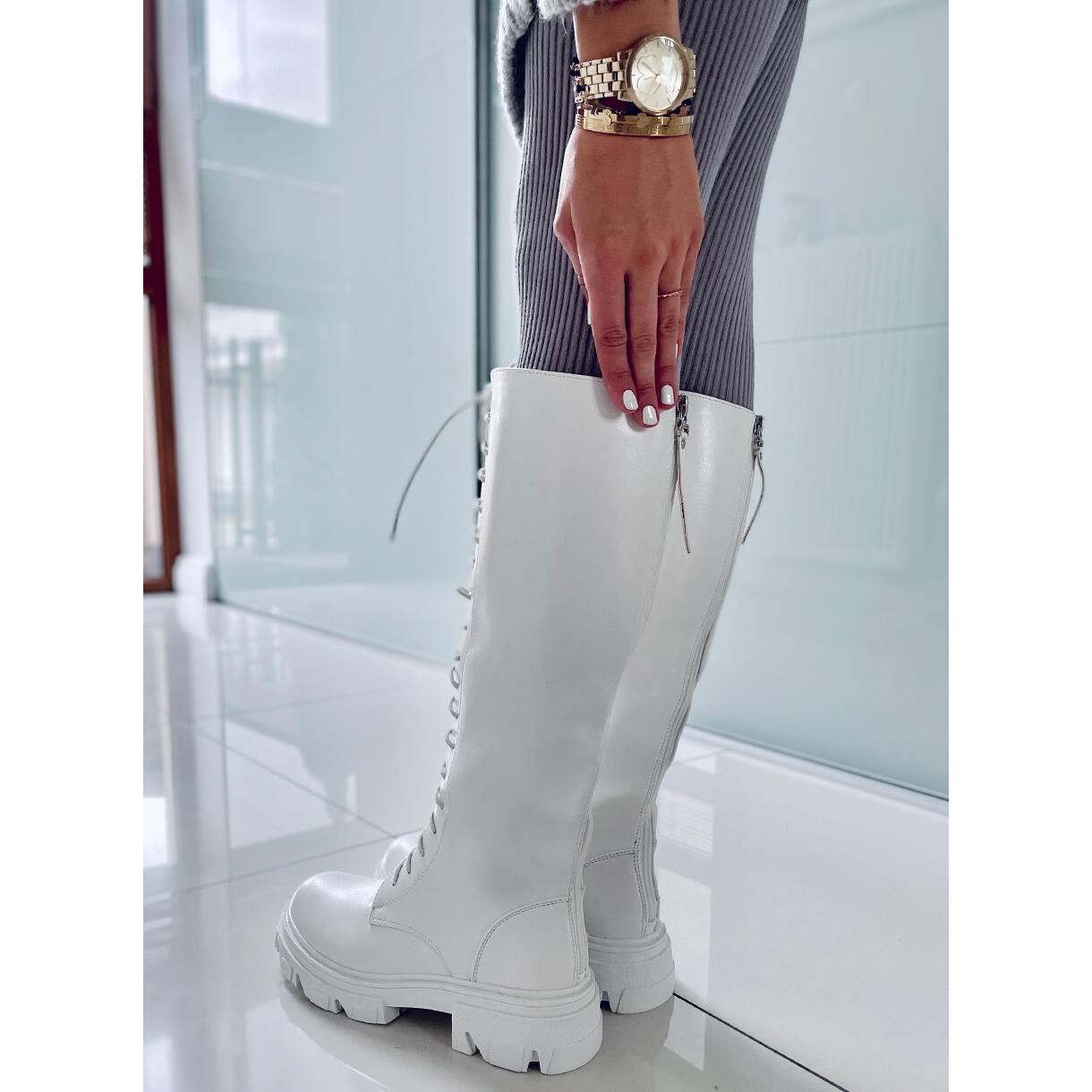 BM Hanson White Stiefel zeichnen sich durch ein glattes, minimalistisches Design in Weiß aus, was sie zu einer vielseitigen Ergänzung zu vielen Stilen macht – von lässig bis elegant. Die kniehohe Höhe verleiht ihnen einen klassischen Look und die runde Spitze erhöht den Tragekomfort.