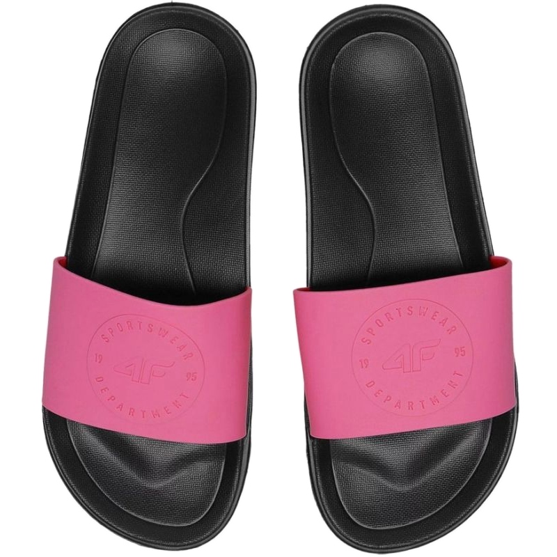 Frauen 4F -Hausschuhe Modell 4FSS23FFFLIF069 ist ein leichtes, bequemes Angebot für den Sommer - perfekt für den Schwimmbad, den Strand und für den täglichen Gebrauch. Die Kombination aus rosa Farbe mit einer schwarzen Sohle verleiht ihnen einen frischen, sportlichen Look. Ein breites Riemen sorgt für eine stabile und bequeme Anpassung ohne Einstellung.
