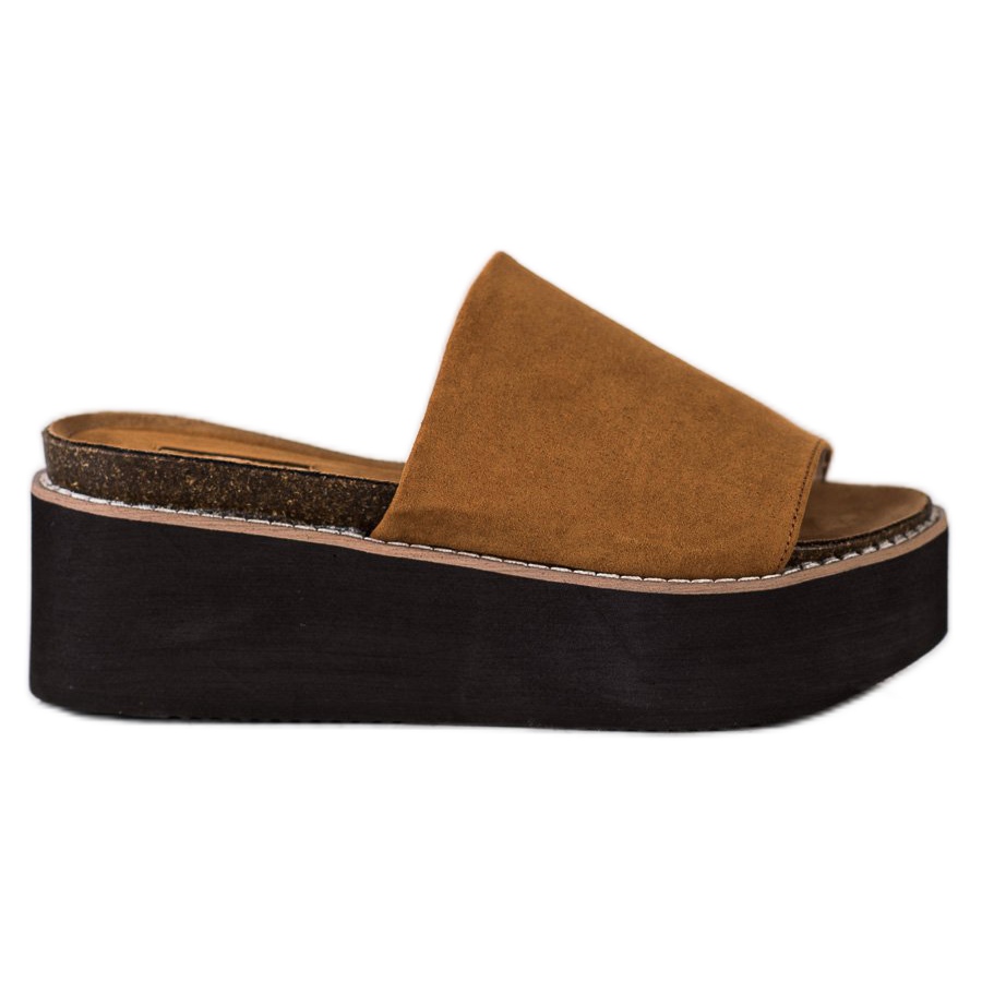 Corina Corina Hausschuhe auf einer hohen Plattform braun