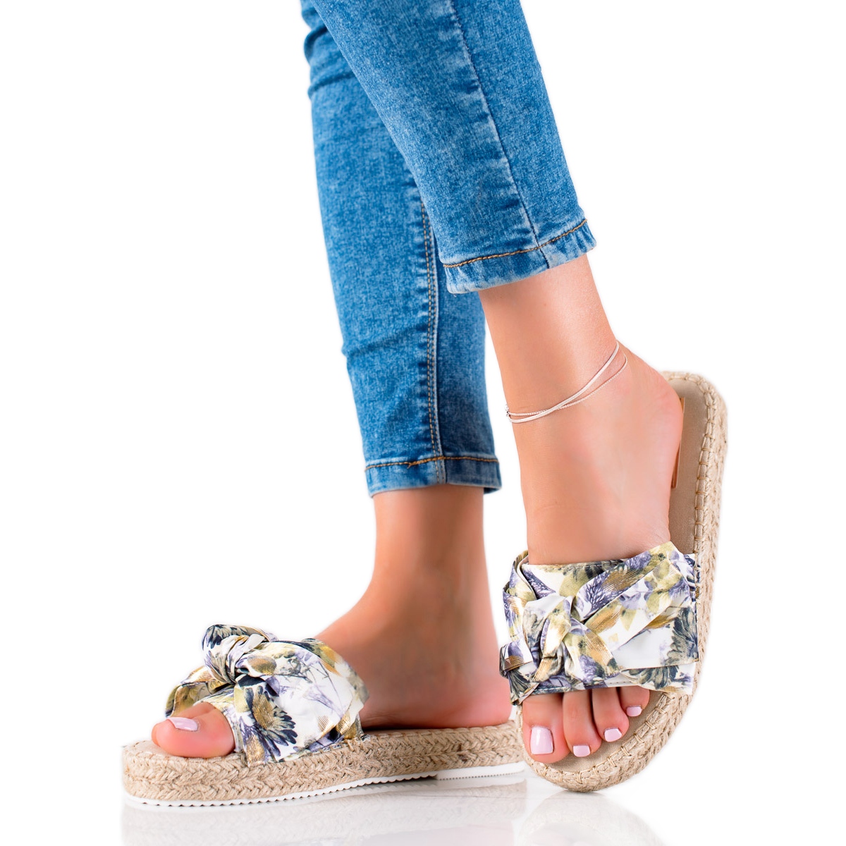 Details: TRENDI Hausschuhe auf einer Strohplattform mehrfarbig