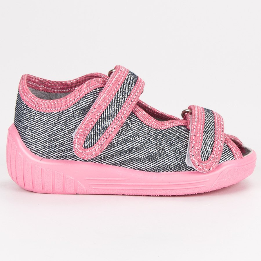 Graue und rosafarbene Hausschuhe mit Klettverschluss von Butymodne sind eine bequeme und praktische Option für Mädchen – sie eignen sich gut für zu Hause, im Kindergarten, in der Schule und im Garten. Sie bestehen aus weichem Textilmaterial mit einem Einsatz aus Naturleder und sorgen den ganzen Tag über für Tragekomfort. Die Gummisohle mit Profil verbessert die Traktion und verringert die Rutschgefahr, und der Klettverschluss ermöglicht ein einfaches Anziehen und schnelles Anpassen der Schuhe an den Fuß.