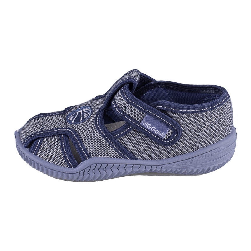 Praktische und komfortable Kinderruhrschuhe Viggami Daniel in einer universellen grauen Farbe. Für den täglichen Gebrauch konzipiert - eine solide Ferse, Klettverschluss erleichtert es, einzuziehen und zu passen, und die Gummi -Sohle mit Profil sorgt für den Griff.