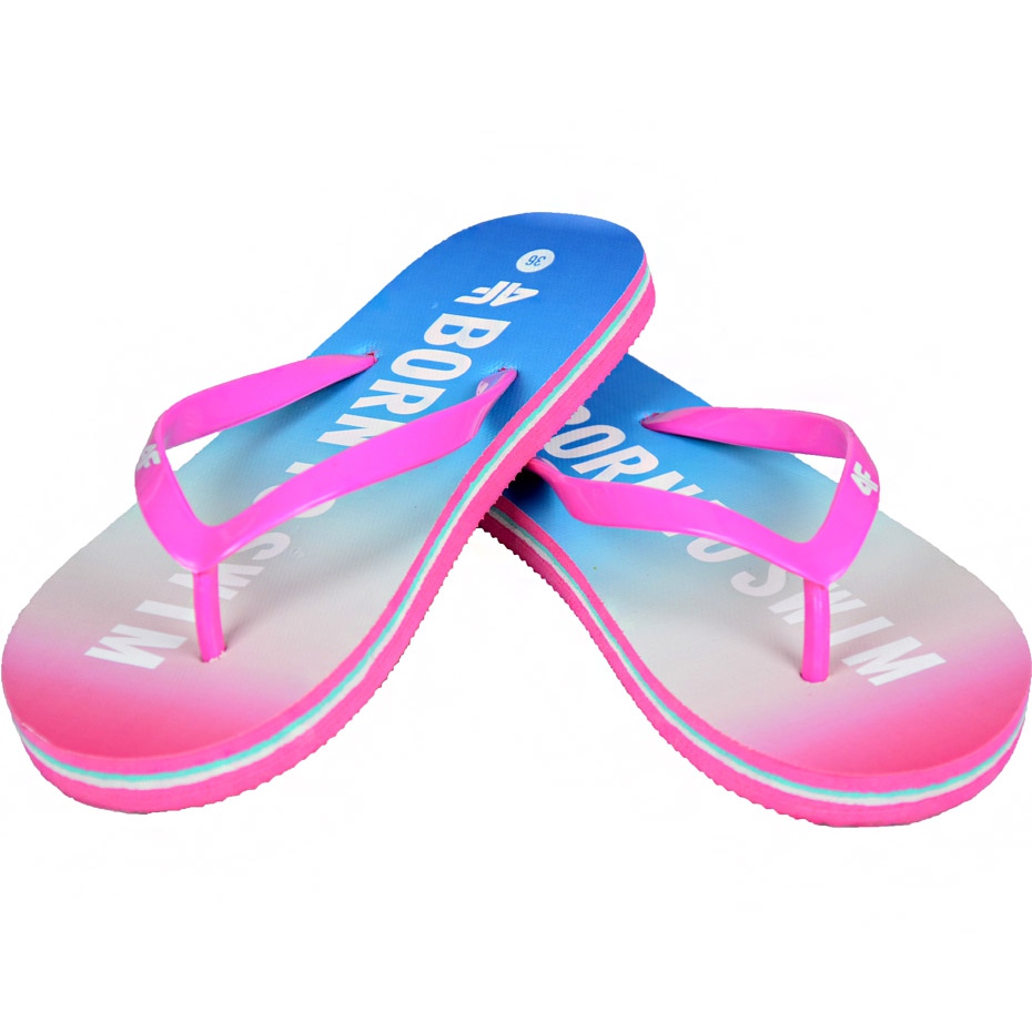 Bunt 4F Flip -Flops für Mädchen - perfekt für den Strand, für den Garten und für tägliche Sommeraktivitäten. Sie haben eine leichte, gepolsterte EVA -Sohle und langlebige Gummistreifen, die den Komfort für Gebrauchs und einfache Reinigung gewährleistet.