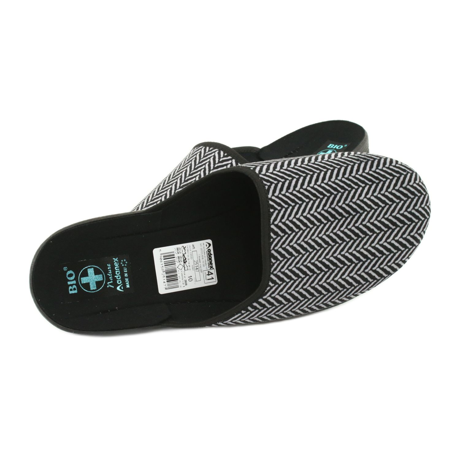 Elegante Hausschuhe der polnischen Marke Adanex aus weicher Velours mit subtilem Fischgräten in Schwarz und Grau. Die profilierte, dickere PU -Schaumsohle sorgt für Leichtigkeit und Polsterung, dank dessen, was durch das Haus herumläuft, bequemer und weniger belastend für Gelenke. Die eingeführte Struktur erleichtert die schnelle Annahme und atmungsaktive Materialien kümmern sich um den thermischen Komfort der Füße.