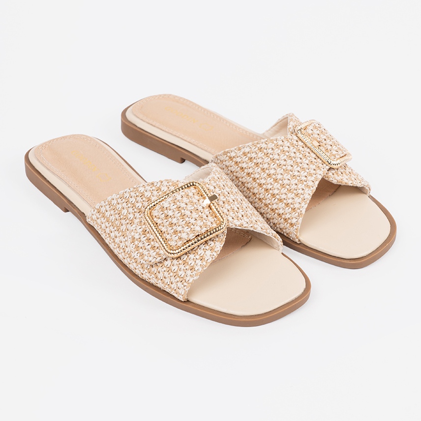 Goodin Goodin Hausschuhe in einem beige und weißen Kühlergrill mit einer Schnalle
