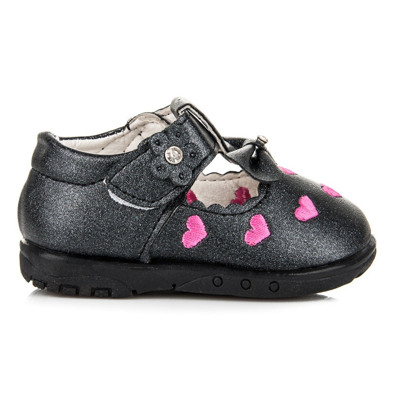 Schwarze Herzen mit Herzen sind niedliche und praktische Ballerinas, die für die jüngsten geschaffen wurden. Hergestellt aus ökologischem Leder, perfekt für die Frühlings-/Sommersaison. Ein zartes Bogen verleiht ihnen einen mädchenhaften Charme, und der Klettverschluss erleichtert es einfacher, selbst kleine Kinder anzuziehen und zu entfernen.