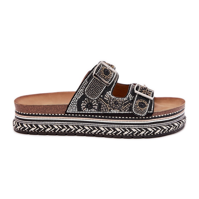 Inna marka Hausschuhe mit Dekoration und Schnallen auf der schwarzen Plattform
