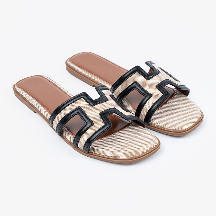 Flip -Flops aus hochwertigen Haut nachahm und textilen Materialien bieten nicht nur ein ästhetisches Erscheinungsbild, sondern auch die Haltbarkeit und das Komfort des Tragens. Eine flache Ferse mit einer Höhe von 1,0 cm macht sie zu einer idealen Lösung für Sommertage - dank der Einfügung und dem offenen Befestigungselement.