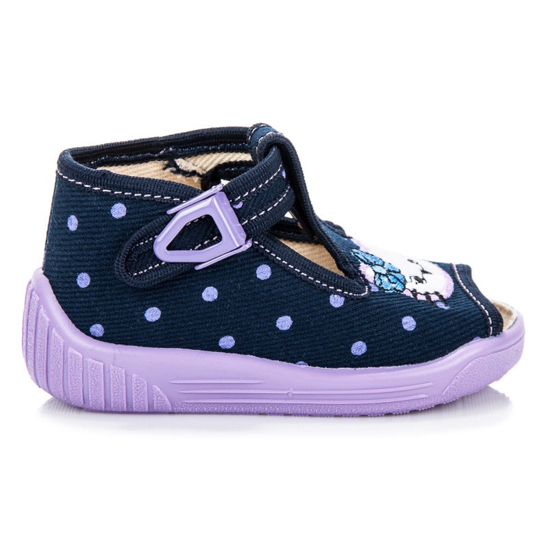 Reweks Hausschuhe mit offener Spitze, blau, sind praktische und stilvolle Schuhe für kleine Mädchen, die Komfort und attraktives Aussehen vereinen – perfekt für den Kindergarten und den Heimgebrauch.