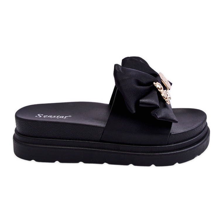 PE1 PE1 Hausschuhe mit einer Schleife und einem dekorativen Teddybären Schwarz Suzy