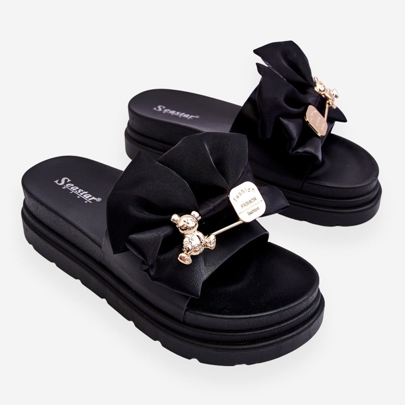 Details: PE1 Hausschuhe mit einer Schleife und einem dekorativen Teddybären Schwarz Suzy