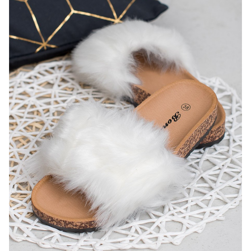 Weißes Fell setzt einen eleganten Akzent und ermöglicht vielfältige Kombinationen mit Freizeitkleidung. Durch ihr minimalistisches Design ohne Muster lassen sie sich sowohl mit Hosen als auch mit Sommerkleidern kombinieren.