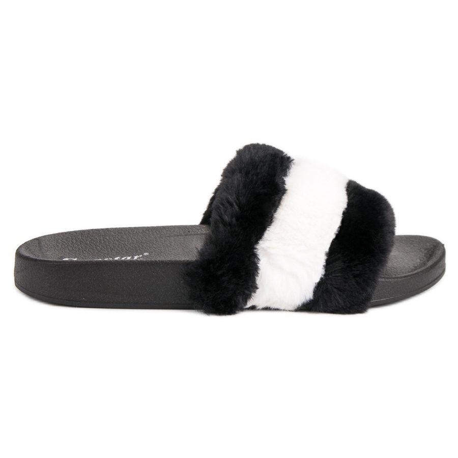 Die Seastar zehenstegsandalen mit Fell in Schwarz sind die perfekte Wahl für Frauen, die zu Hause Wert auf Komfort und Stil legen. Diese Slipper zeichnen sich nicht nur durch ihre elegante schwarze Farbe aus, sondern auch durch das originelle Fell mit weißen und schwarzen Streifen, das ihnen einen einzigartigen Charakter verleiht. Sie bestehen aus hochwertigem Gummi und garantieren Langlebigkeit und Festigkeit, sodass sie lange halten.