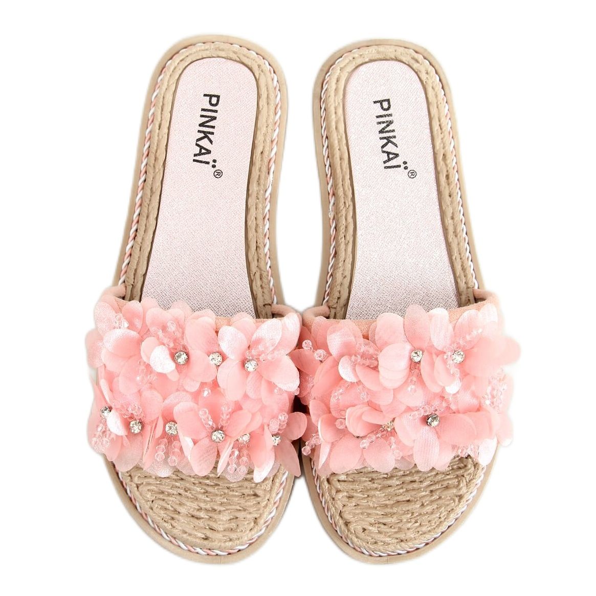 Inna marka Hausschuhe mit rosa Blumen LS003 Pink