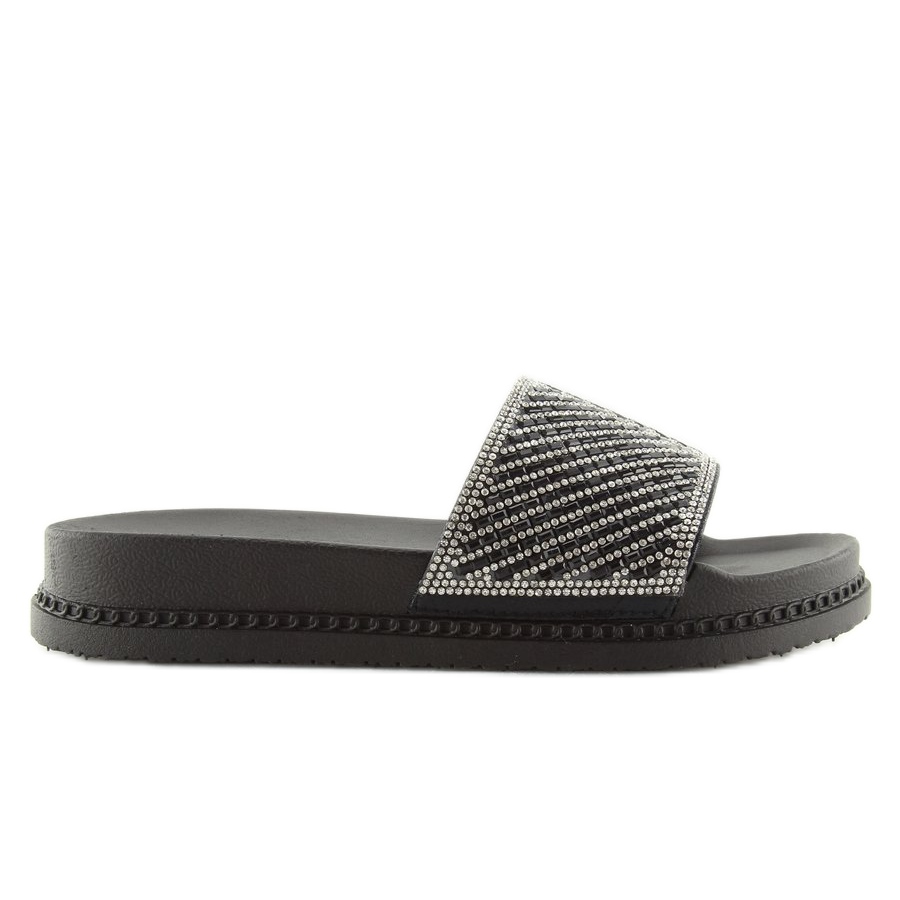 Inna marka Schwarze Hausschuhe mit Zirkonia 966 Black