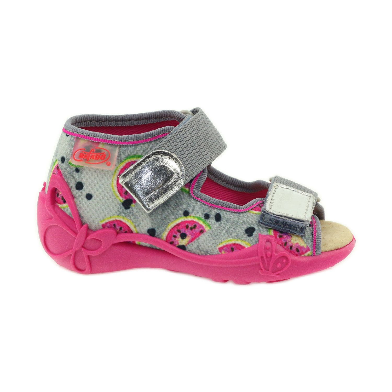 Details: Hausschuhe, Sandalen mit Klettverschluss, Befado 242p080 grau rosa