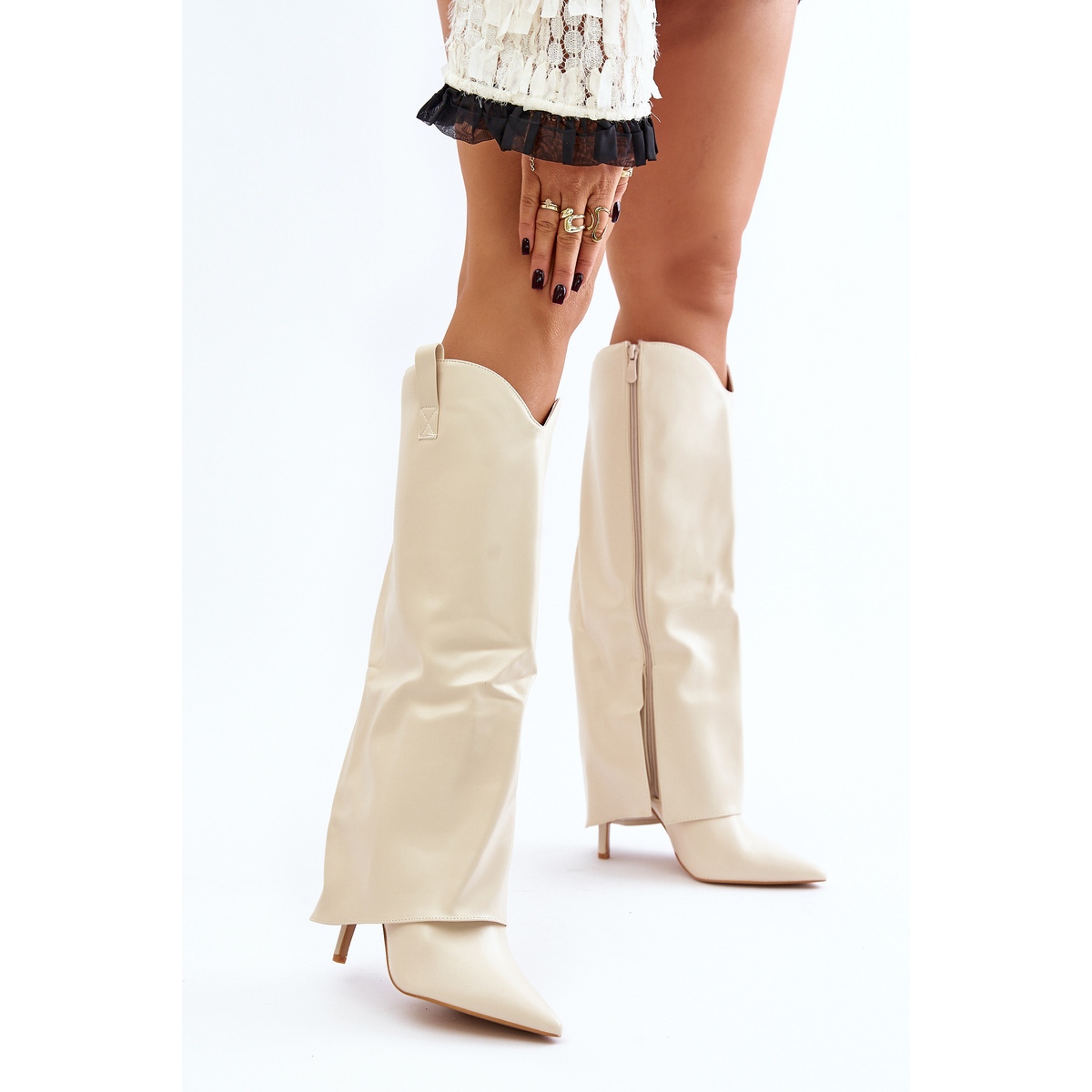 Inna marka Hellbeige Bellinna-Stiefel mit hohem Absatz und umgeschlagenem Schaft
