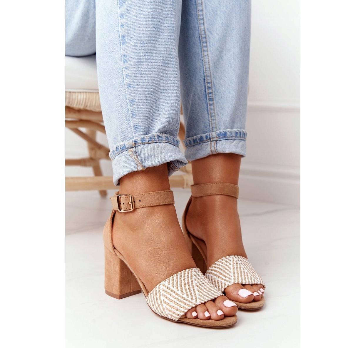 - Modell: Sandalen mit Zopf auf einer Ferse