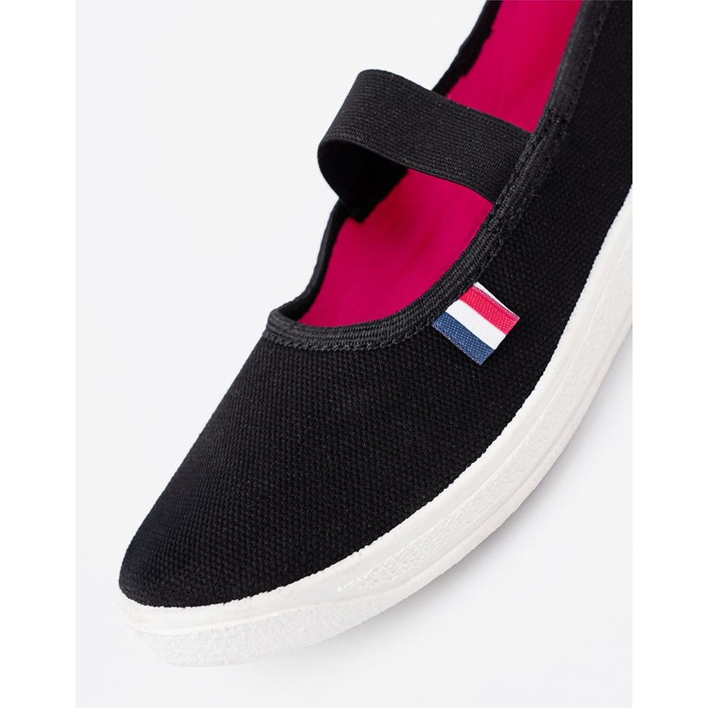 Details: Shelvt Helle schwarze Schuhe mit einem flexiblen Gürtel