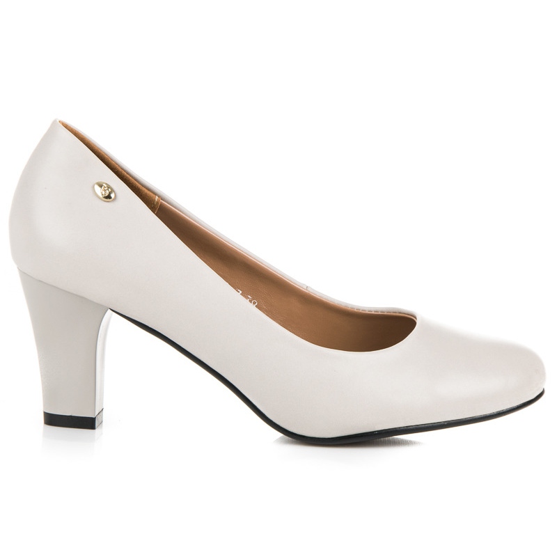 Die Pumps bestehen aus hochwertigem ökologischem Leder und verfügen über eine bequeme Innensohle aus Naturleder, die den ganzen Tag über Tragekomfort gewährleistet. Die runde Spitze und die integrierte, versteifte Ferse garantieren Stabilität und Komfort, während der 8 cm hohe Absatz der Silhouette Anmut und Schlankheit verleiht.