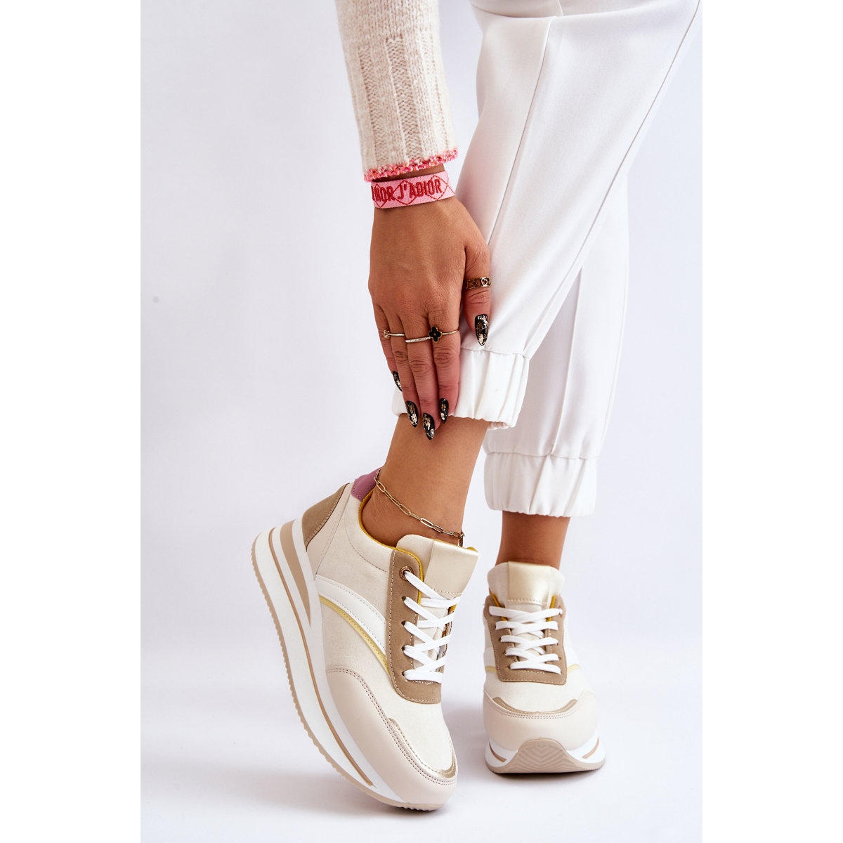 Details: PG1 Hermain Beige Turnschuhe mit Keilabsatz weiß
