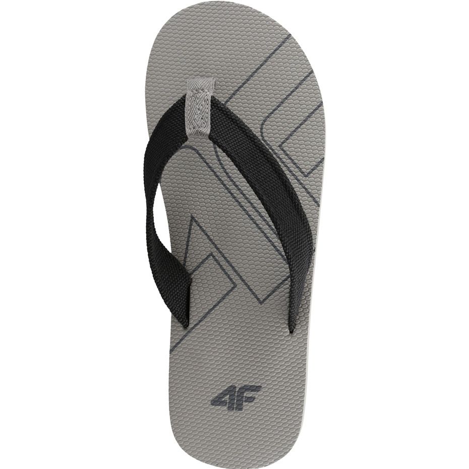 Herrenklappen 4F H4L19 KLM003 83S-Bege-schwarze zehenstegsandalen, die jeden Tag am Strand und jeden Tag funktionieren. Leichtes Design, Textilstreifen und eine EVA -Schaumsohle sorgen für Komfort bei Sommeraktivitäten. Ein einfaches, universelles Design ohne Muster kann sich leicht an viele Stile anpassen.