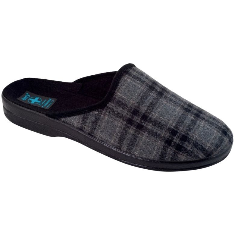 Details: Herren Adanex karierte Hausschuhe 18464 schwarz grau