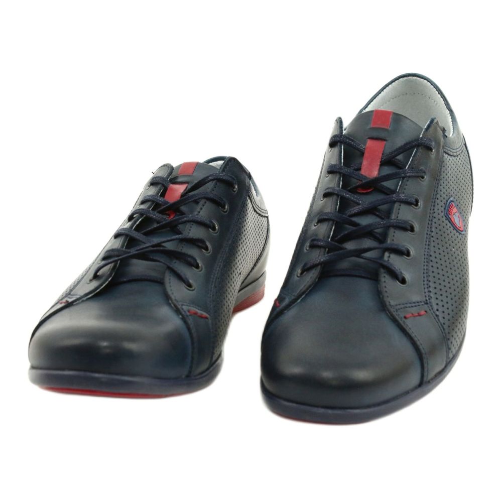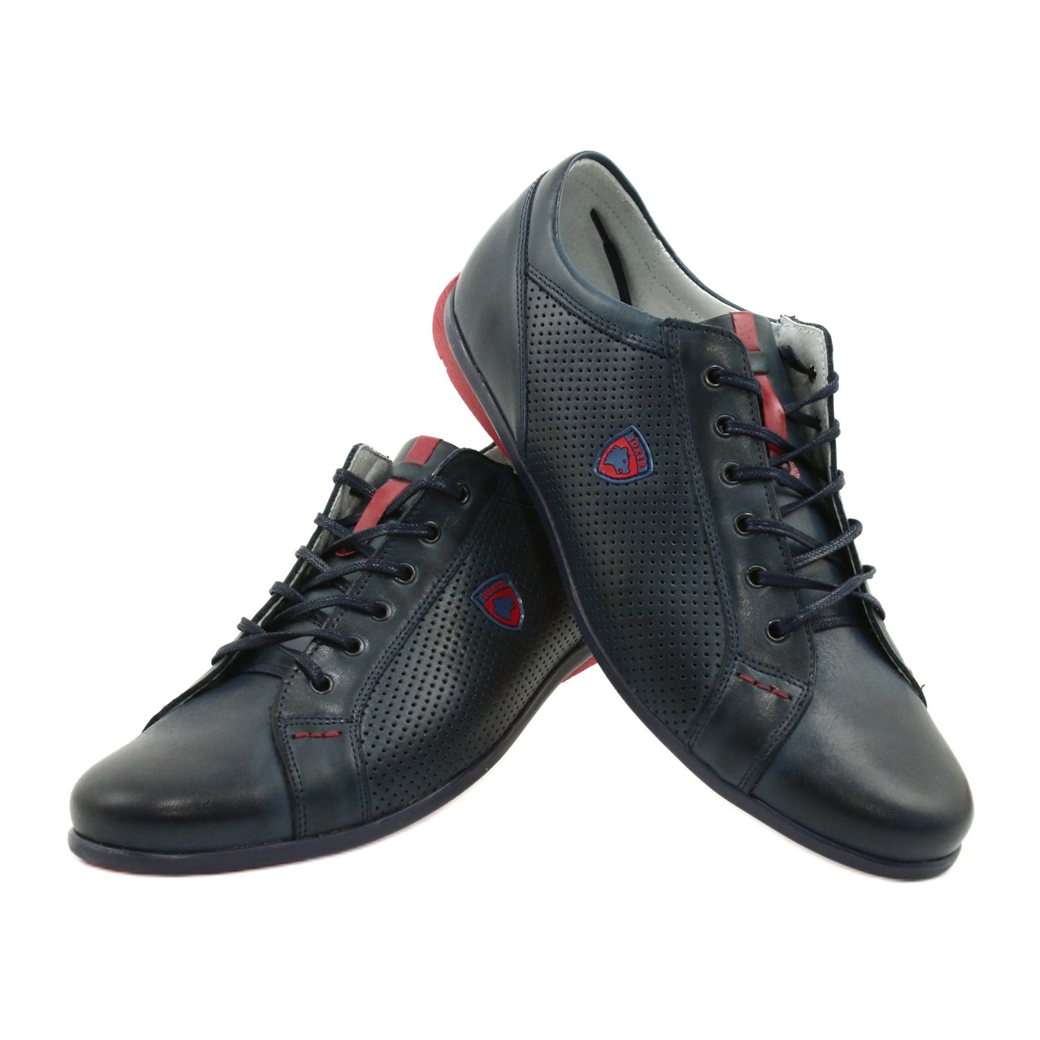 Die Herren-Freizeitschuhe Joker 295 in Marineblau mit roten Akzenten sind die perfekte Wahl für Männer, die jeden Tag Wert auf Komfort und Stil legen. Diese aus hochwertigem Naturleder gefertigten Schuhe zeichnen sich durch ein glattes Obermaterial aus, das nur durch die Schnürsenkel und die geprägten Löcher an den Seiten dezent hervorgehoben wird.