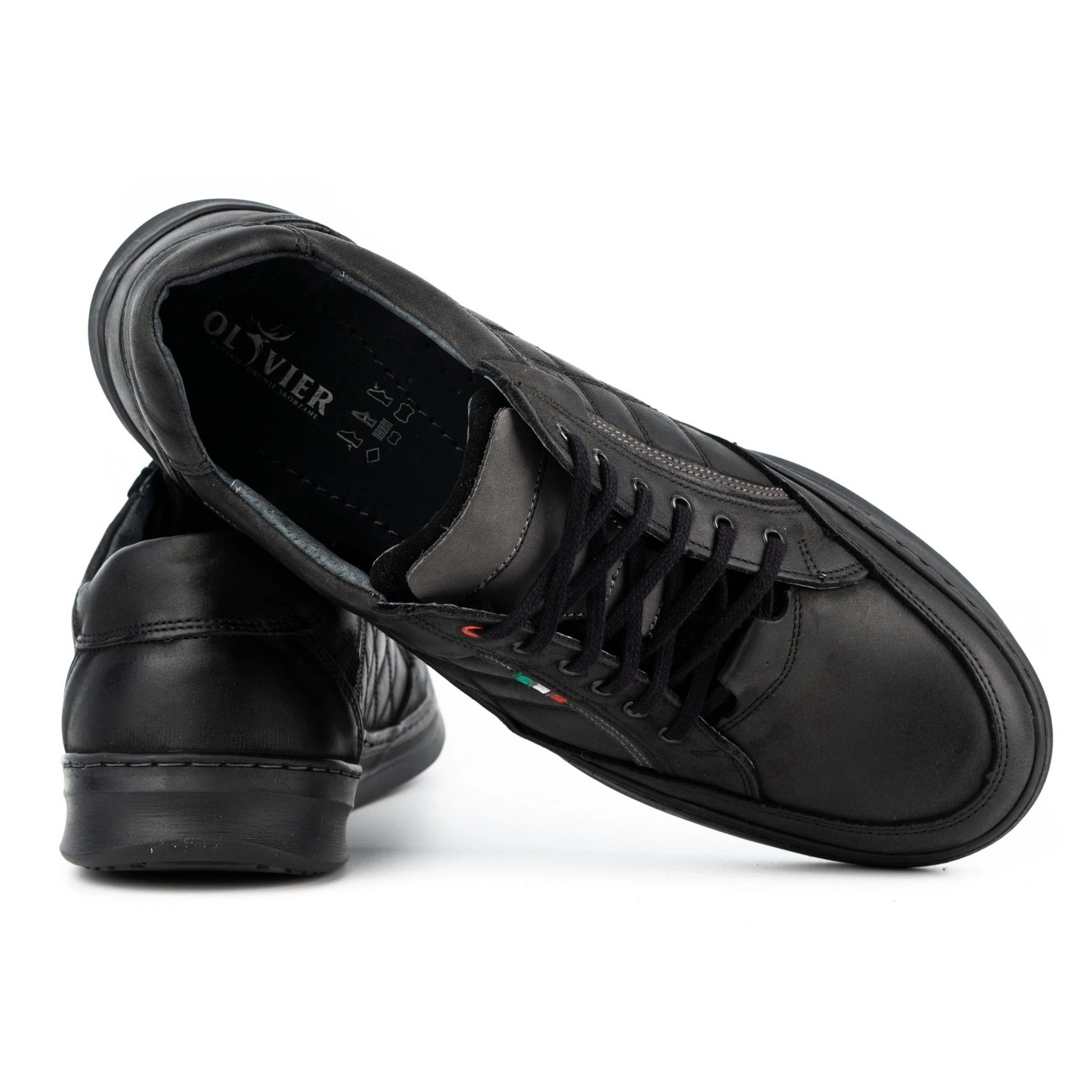 Olivier 297GT -Schuhe klassisch, ausschließlich aus natürliches Leder hergestellt, sind ein Vorschlag für Männer, die den Komfort und den universellen Stil schätzen. Der zeitlose Schnitt kombiniert sich leicht mit einer Garderobe im Stil der Sporteleganz - von Jeans über Chinos und Freizeitjacken. Das Modell ist geschnürt, was eine bequeme Passform gewährleistet, und kontrastierende Nähte verleihen den Schuhen Charakter.