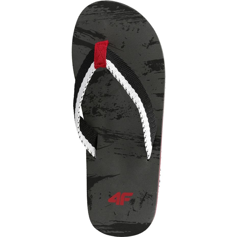 Herren Flip -Flops 4F H4L19 KLM002 90A -Leichte, komfortable und stilvolle Flip -Flops, die täglich am Strand und am Pool funktionieren. Das mehrfarbige Design kombiniert mit schwarzen Elementen verleiht ein modernes, universelles Aussehen, und Textilstreifen sorgen für Komfort.