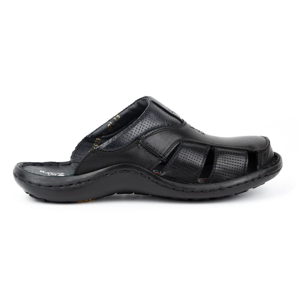 Kampol Kampol Herren-Leder-Flip-Flops 224KAM, schwarz