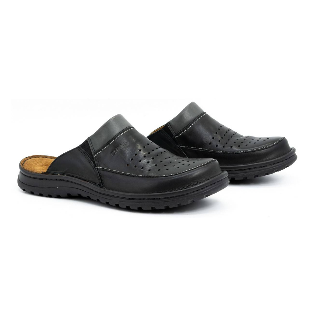 Universell, elegant und komfortabel - das sind das Kampol -Modell 219 für Männer zehenstegsandalen für Männer. Garantiert Komfort, sogar barfuß zu tragen, und sorgt für ein angenehmes Gefühl, barfuß zu gehen, während sie vom Boden isoliert. Neutrale, schwarze Farben lassen Sie sie leicht an Sommer- und Heimstilisierungen anpassen, unabhängig vom Alter.