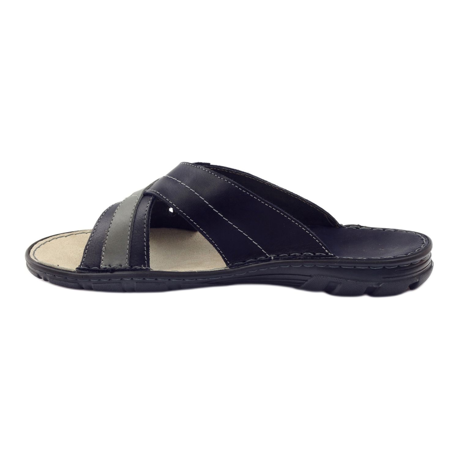 Elegante und bequeme zehenstegsandalen der polnischen Marke Naszbut, Modell 055, komplett aus Naturleder gefertigt. Die weiche Innensohle aus Leder gleicht Bodenunebenheiten aus und sorgt so für Komfort an heißen Tagen. Die klassische Marineblau-Farbe mit zarten grauen Akzenten lässt sich problemlos sowohl zu Shorts als auch zu längeren Hosen kombinieren.