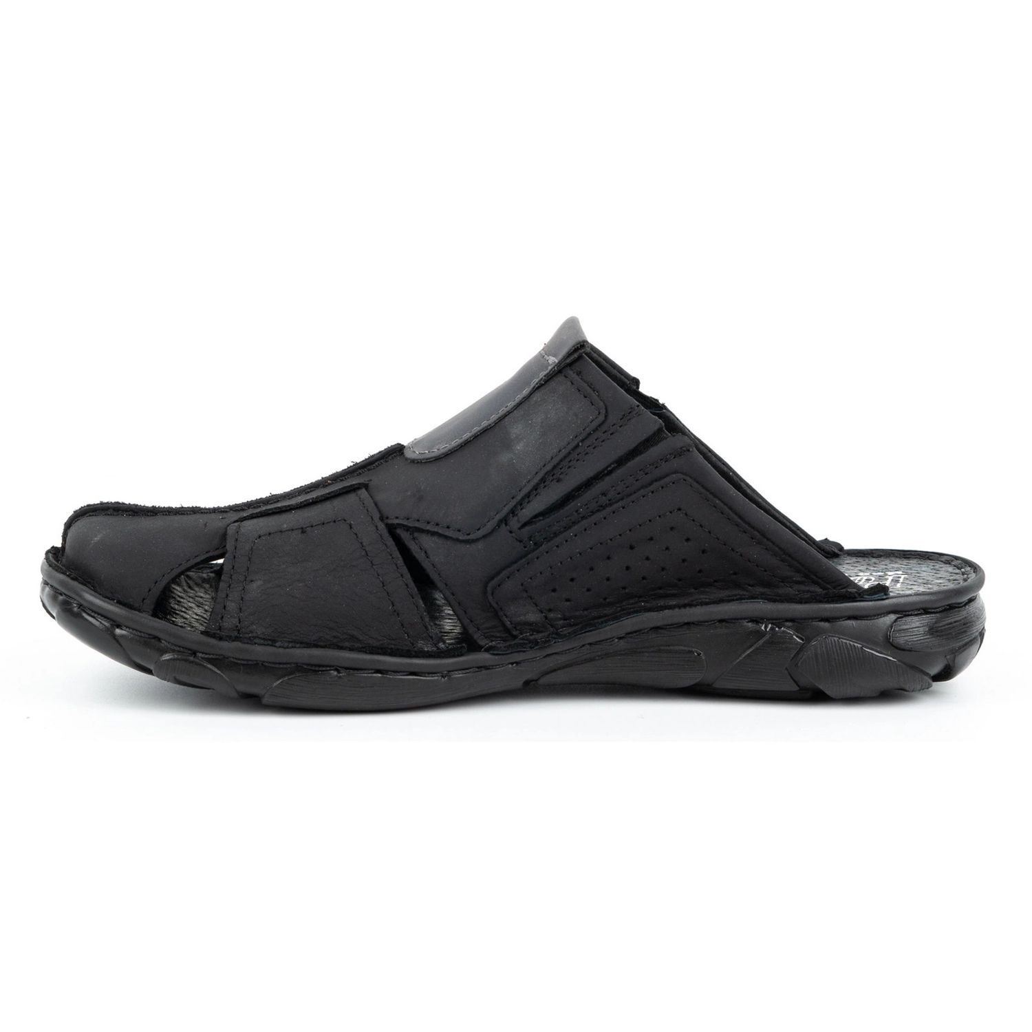 Klassische, Sport -Männer -Flip -Flops, die sowohl im Urlaub als auch als komfortable Schuhe für Heim- oder Wochenendschuhe arbeiten. Alles aus natürliches Leder - eine weiche, angenehme Touch -Einstellung und Obermaterial sorgt für Komfort, auch wenn sie barfuß tragen. Der profilierte Einsatz unterstützt den Fuß gut und das leichte Design macht es zu einer praktischen Wahl für Gepäck. Neutrale, schwarze Farbe passt zu vielen Stilen, und die polnische Produktion garantiert sorgfältige Verarbeitung.