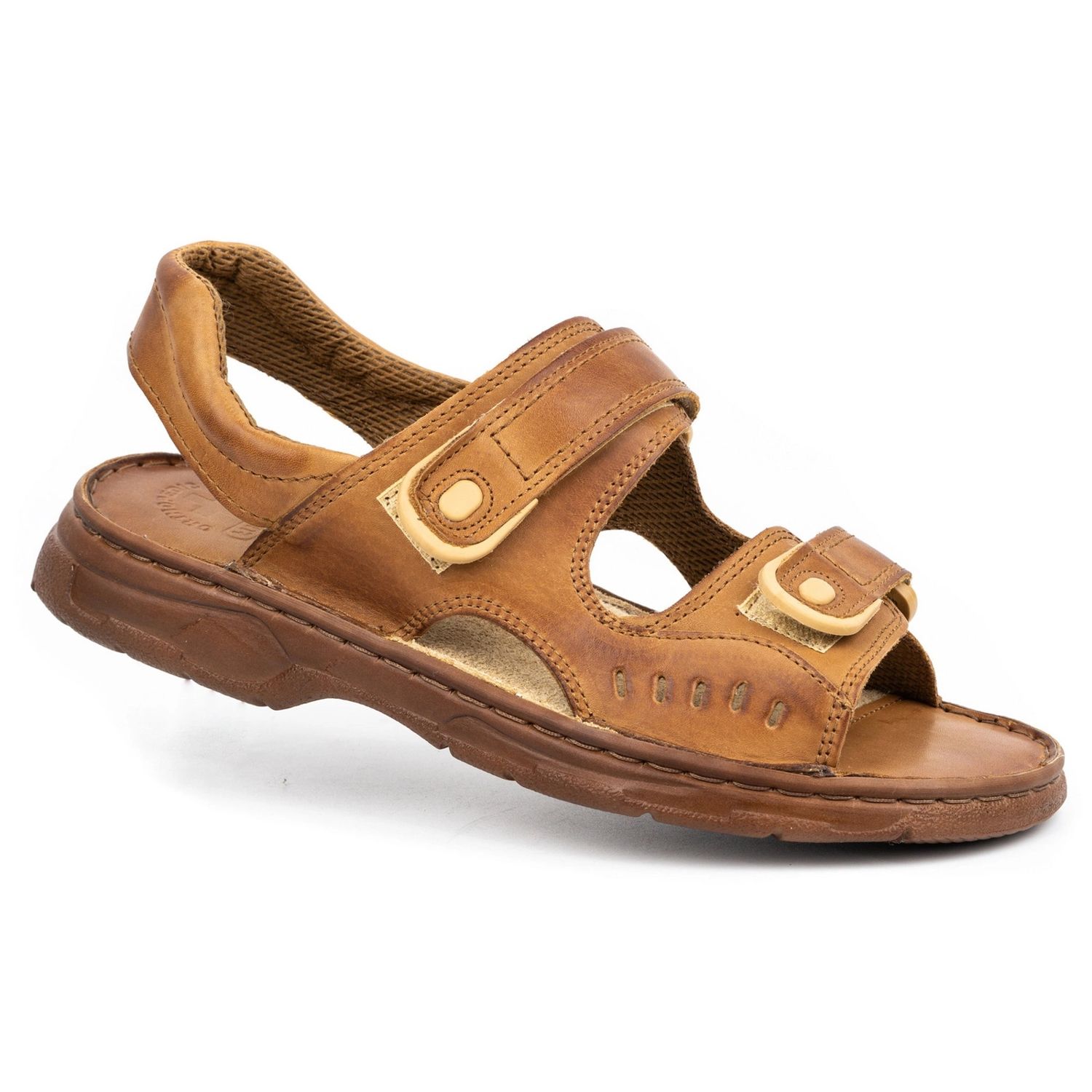 Details: ŁUKPOL Herren-Ledersandalen mit Klettverschluss 812 braun
