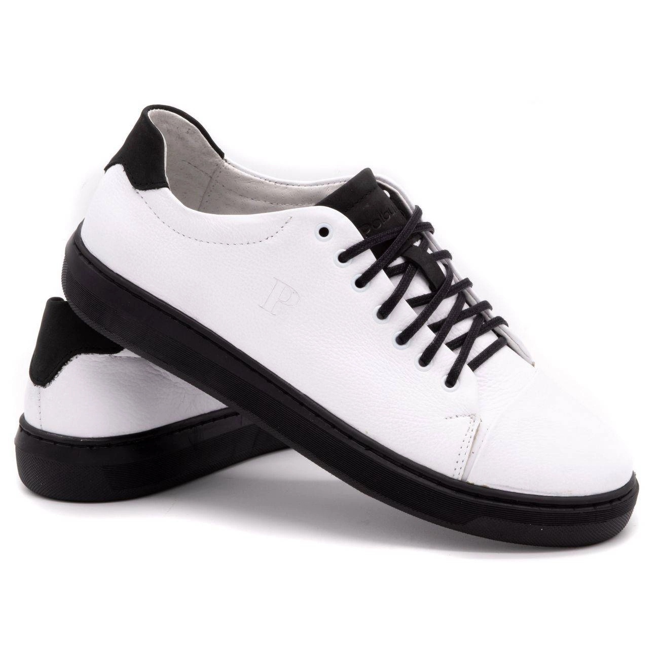 Lernen Sie die Herren-Lederschuhe Polbut 2109 kennen, die Eleganz mit Alltagskomfort verbinden. Diese einzigartigen weißen Schuhe mit schwarzen Akzenten sind die perfekte Wahl für lässige Anlässe und alltägliches Styling. Sie sind sowohl außen als auch am Einsatz aus hochwertigem Naturleder gefertigt und sorgen für Langlebigkeit und Tragekomfort den ganzen Tag.