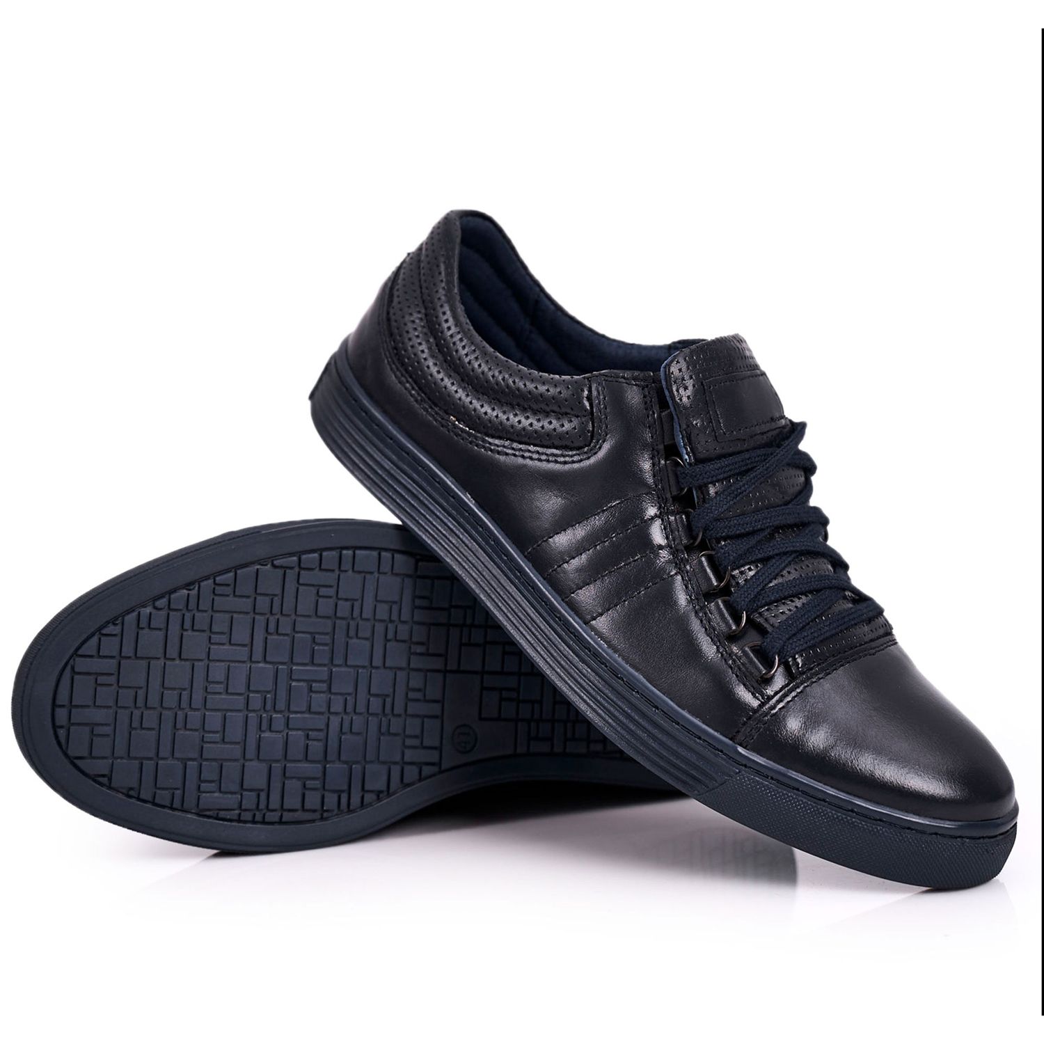 Wir präsentieren Herren-Ledersneaker der polnischen Marke BEDNAREK in Marineblau. Diese Schuhe sind aus hochwertigem Naturleder gefertigt und vereinen Eleganz und Komfort für den täglichen Gebrauch. Dank der Verwendung von weichem Schaumstoff in der Einlegesohle ist das Gehen darin ein reines Vergnügen, was sie zu einer idealen Wahl für den täglichen Gebrauch macht.