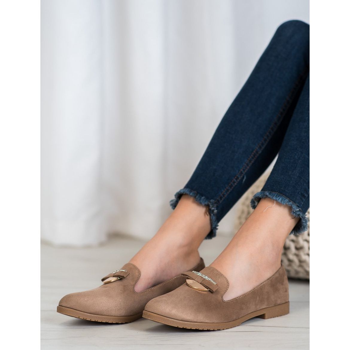 Der äußere Teil des Obermaterials besteht aus hochwertigem ökologischem Wildleder in einem dezenten hellbraunen Farbton, was den Schuhen einen einzigartigen Charakter verleiht. Runde, mandelförmige Zehen unterstreichen ihre Eleganz und ein beigefarbener Anhänger mit Zirkonias und einer Schleife sorgt für Chic und Originalität. Ein gut geformter Schaft und ein eingearbeiteter Absatz machen das Tragen dieser Schuhe zum reinen Vergnügen – sie sind einfach anzuziehen und angenehm zu tragen.