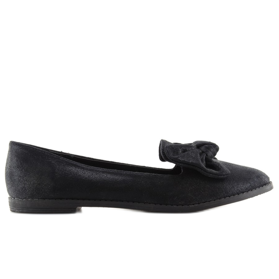 Herren mit Schleife, schwarz 888-3 schwarz, sind eine ideale Wahl für Frauen, die Wert auf Stil und Komfort legen. Diese eleganten Mokassins zeichnen sich durch eine schillernde Textur aus, die ihnen einen einzigartigen Charakter verleiht. Eine zarte Schleife an den Zehen zieht die Blicke auf sich und verleiht jedem Styling eine feminine Note.