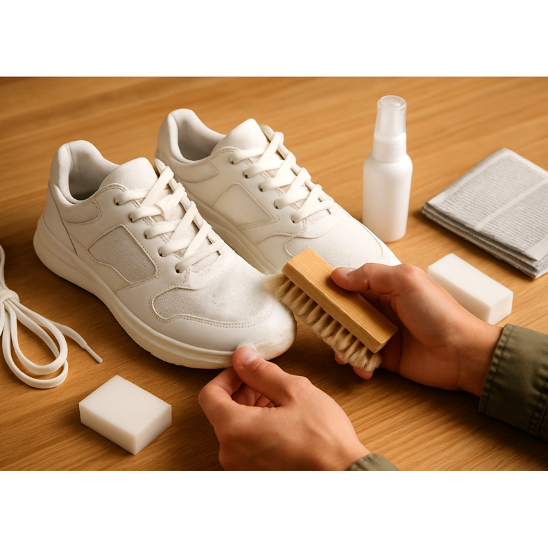 Vernachlässigte, schmutzige Schuhe ruinieren jedes Styling. Reinigen Sie sie regelmäßig.