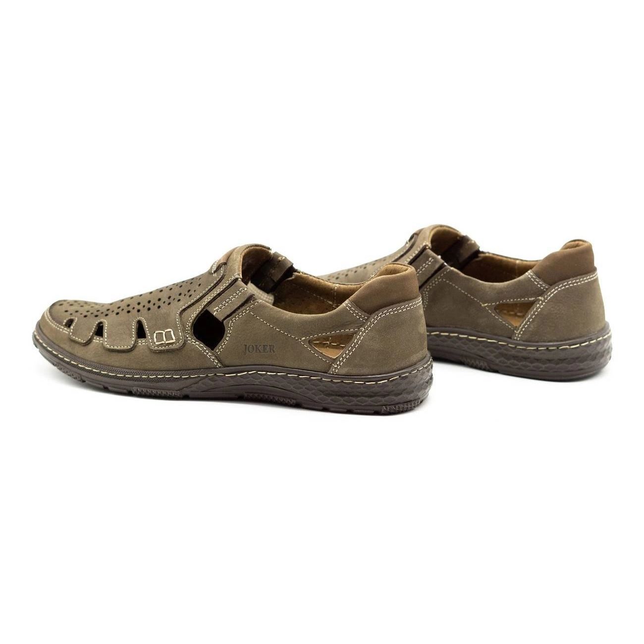 Elegante und komfortable Mokassins der Marke Joker, perfekt für wärmere Tage. Vollständig aus natürliches Leder (äußerer und Einsatz) in einem modischen Olivengrün Farbton. Das Modell rutschte mit einer abgerundeten Nase ohne Designs - ein universeller Schnitt, der sich hervorragend für lässige und intelligente, lässige Stylisationen eignet.