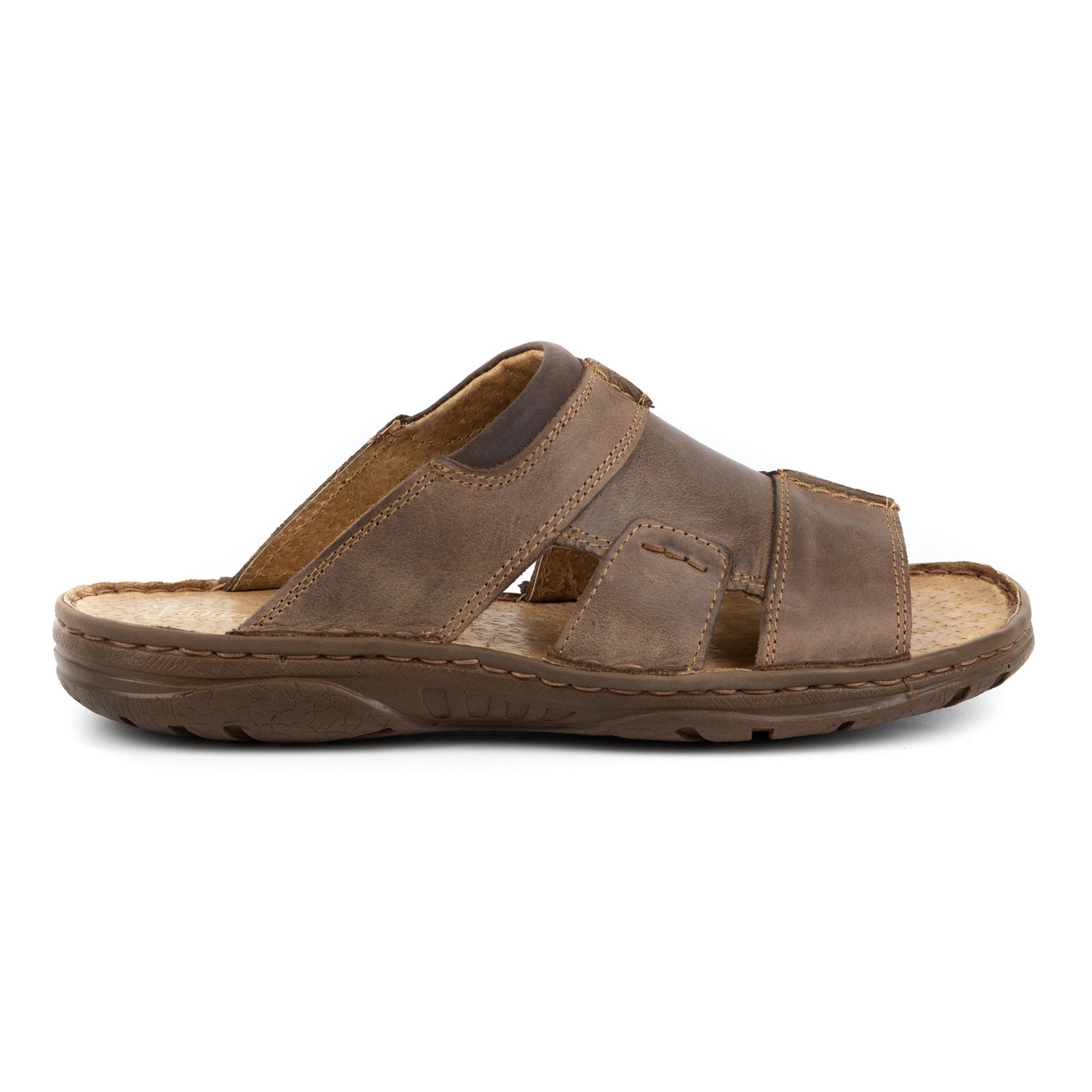 Die braunen Herren-zehenstegsandalen Polbut 358 sind ein ideales Angebot für Männer, die Wert auf Komfort und einen modischen, sportlichen Stil legen. Sie bestehen vollständig aus Naturleder und bieten maximalen Komfort auch bei längerem Tragen. Durch ihr weiches Material fühlt es sich beim Gehen barfuß an und isoliert die Füße effektiv vom Boden.